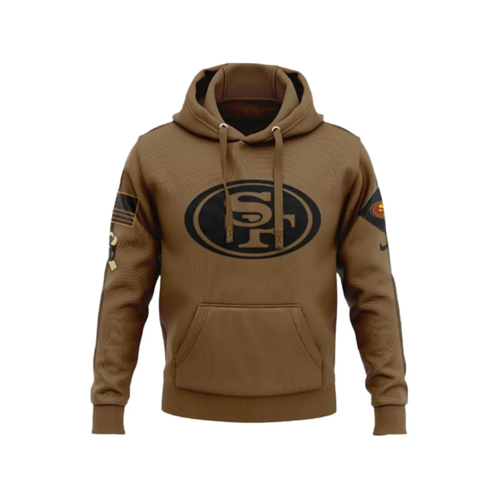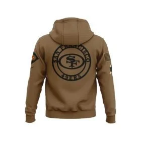 The 49ers Salute to Service hoodie is a classic piece with a message behind it. This hoodie is a way to show your love and respect for the San Francisco 49ers, it is a military inspired design. This hoodie is made of high quality fabric, hooded style collar, pouch pockets and this hoodie’s brown colour is a classic look for everyday wear as well. This hoodie can be layered over tees, polos or sweaters as well and pairing the hoodie with pants and trousers would look great. The 49ers Salute to Service hoodie can be worn for game day, casual outings or if you’re cheering from the stands, this hoodie is a must have in your wardrobe.Â