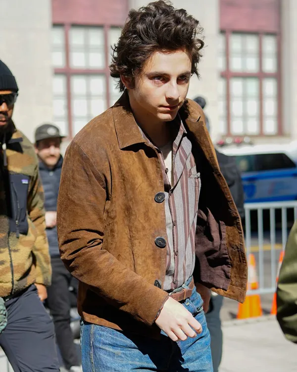 Bob Dylan A Complete Unknown Timothee Chalamet Brown Jacket