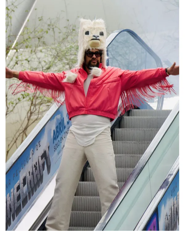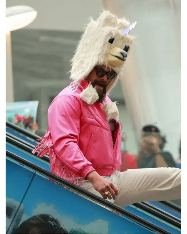 Garrett A Minecraft Movie 2025 Jason Momoa Pink Fringed Bomber Jacket
