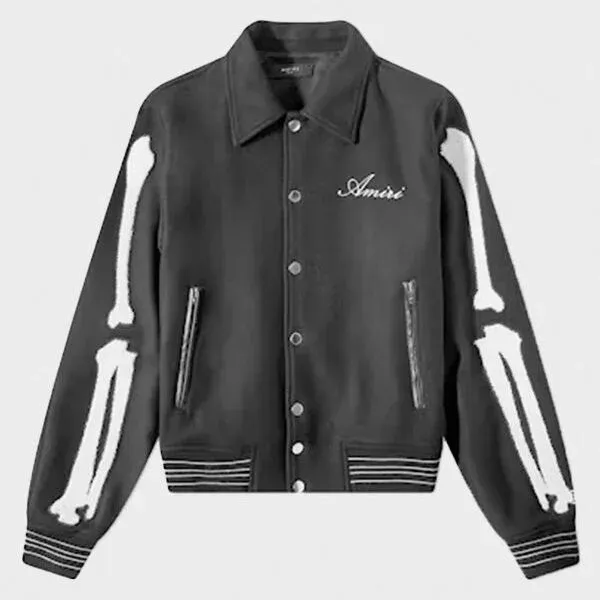 AMIRI Bones Black Varsity Jacket is totally game changer It’s perfect for cold evenings and looks amazing with jeans.