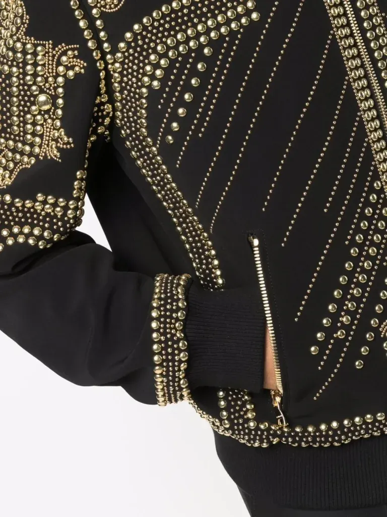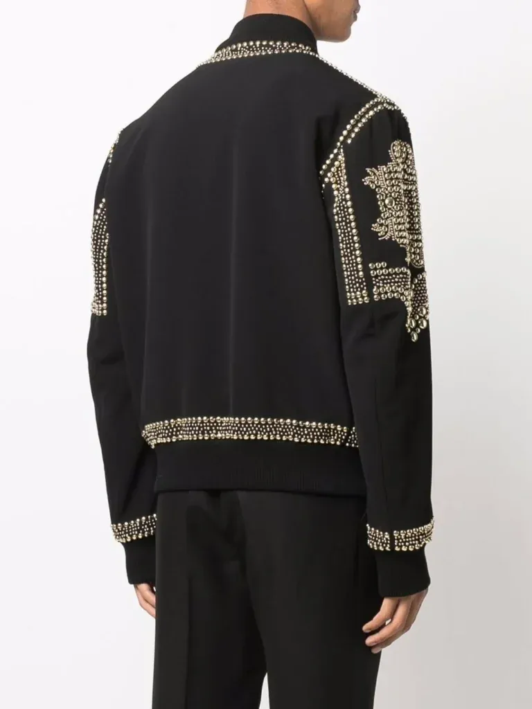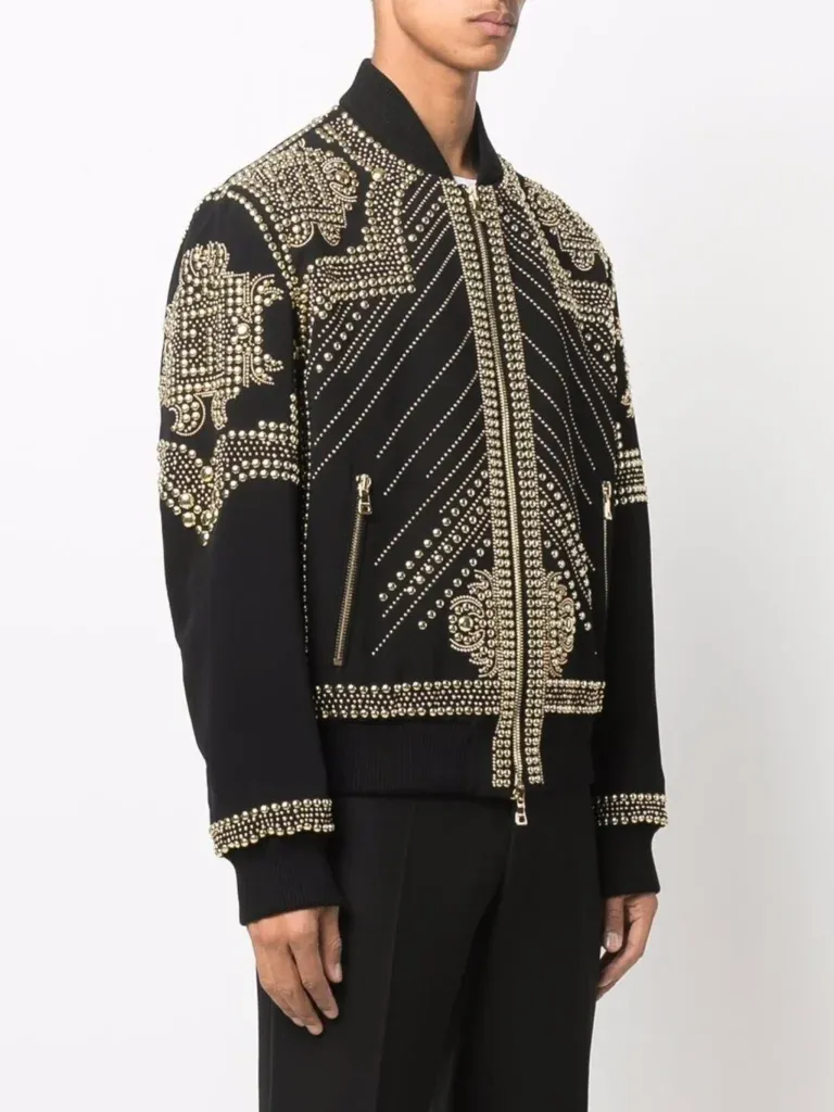 We all have that aim where we want to attract maximum attention to ourselves. Moreover, this goal can only be achieved by wearing some cool and stylish outfits. Likewise, if you are looking for something unique and special then get your hands on the Balmain Embroidered-Stud Bomber Jacket. This fashion piece has started a different conversation among the styling geeks. On the other hand, looking at the design the Balmain Embroidered-Stud Bomber Jacket is fashioned with wool and also comes with a golden and purple color scheme which sets it apart. If you are heading to an indoor event this jacket is recommended.