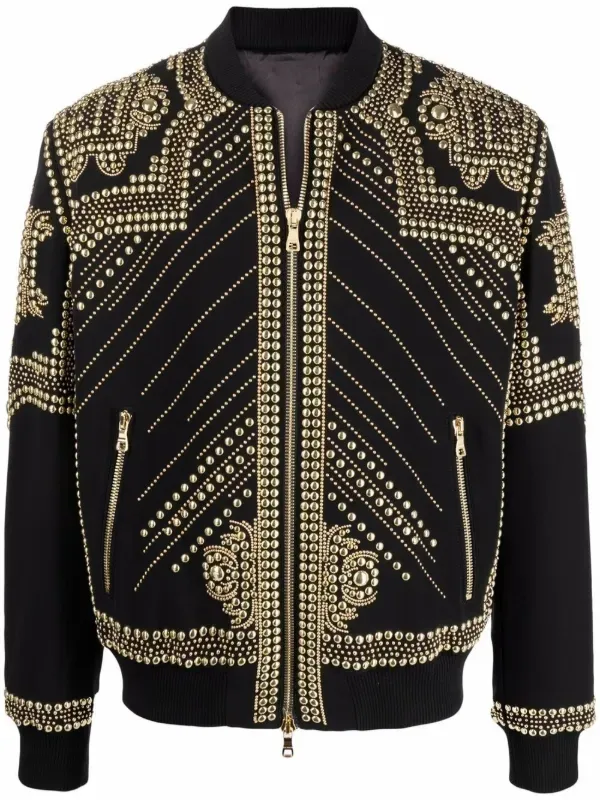 Balmain Embroidered-Stud Bomber Jacket