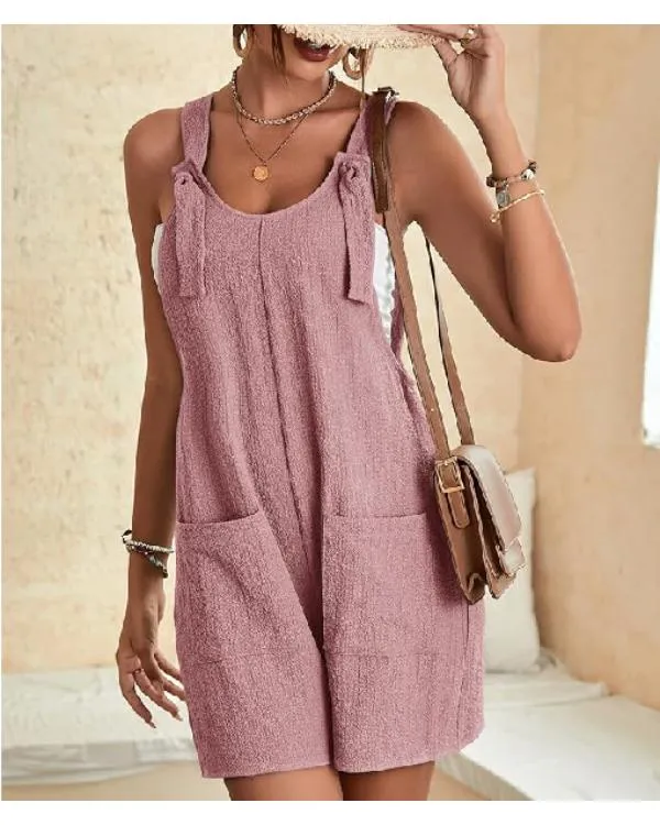 You can style this romper with an inner shirt or without a shirt, it looks attractive on you. It has a beautiful baby pink color that promotes girly vibes. The “Battle Camp S01 Gabi Butler Pink Rompers” comes in a wool fabric material with rounded neck and has knot style shoulder straps. It is a sleeveless romper with two front pockets. For a beachy look it will also look so cool.