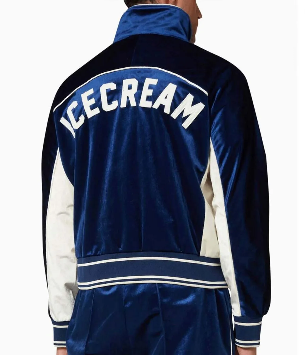 This ice cream velour track jacket totally for jacket lovers and supporters just feel free and think about this it will look good on you. This fit goes to, paired with tees, jeans and joggers. It is available in sizes. Enjoy your vacation days and winters with this fit.its suitable for all day gatherings.