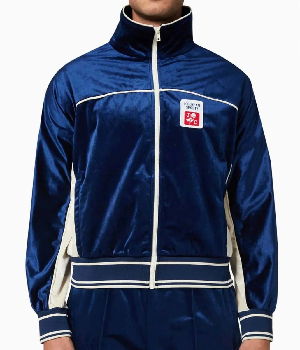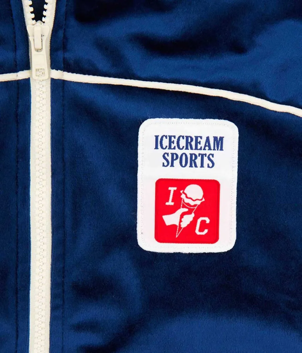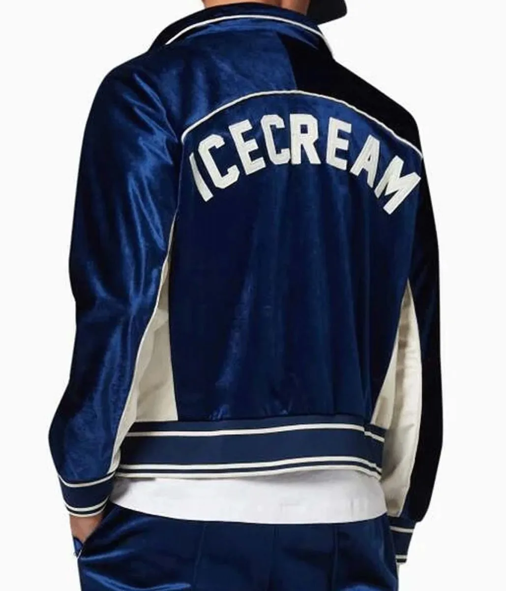 Elevate your streetwear rotation with the bbc- icecream velour track jacket, a standout from the brand’s pre-fall 24 or spring collection. Crafted from a clothing company billionaire boys club, polyester material, soft viscose lining, high neck collar, long sleeves, rib knitted hemline, two side waist pockets, icecream embroidery on back. Designed with distinctive branding the jacket sports an embroidered ice cream cone logo on the chest for subtle indentity.