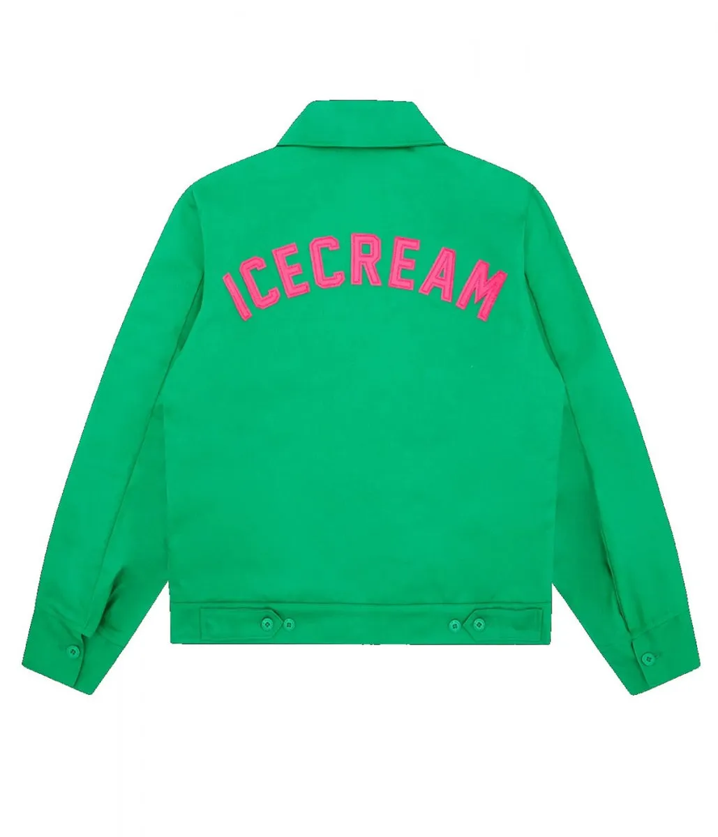 This “BBC Ice Cream Work Green Jacket” is a special mix of street style and foodie lovers with its beautiful prints on it. Inspired by the Billionaire Boys Club, this jacket creates a unique look that helps you make a cute statement. You can style this outstanding combo of green and pink color with any of your favourite bottoms. This green jacket has ice cream written patches on the front and back of it, this is a classy attire to wear.