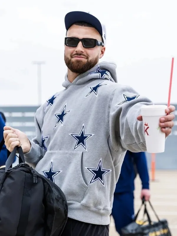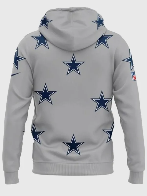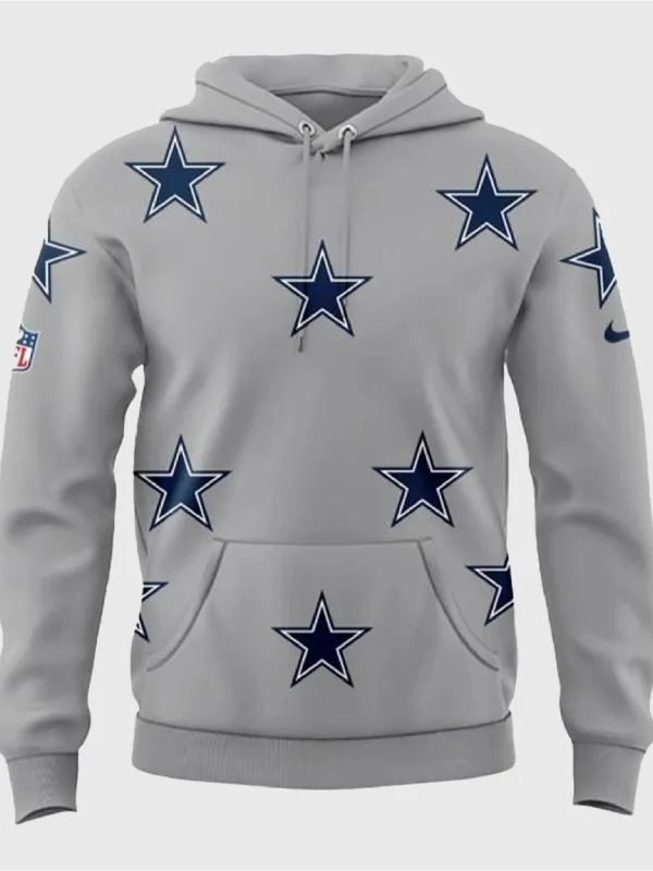 The Dallas Cowboys monogram pullover hoodie is the perfect blend of team spirit and modern streetwear style. Crafted from fleece fabric material, pullover closure, pullover closure, hooded collar, full sleeves, rib knitted cuffs, available in grey color, this piece offers durability, comforts, and warmth. It is fashionable, it is an ideal for fans. And suitable for indoor and outdoor activities. The color and designing of this hoodie. And stars in front give vibes. You can pair it with jeans, straight pants, joogers.Â