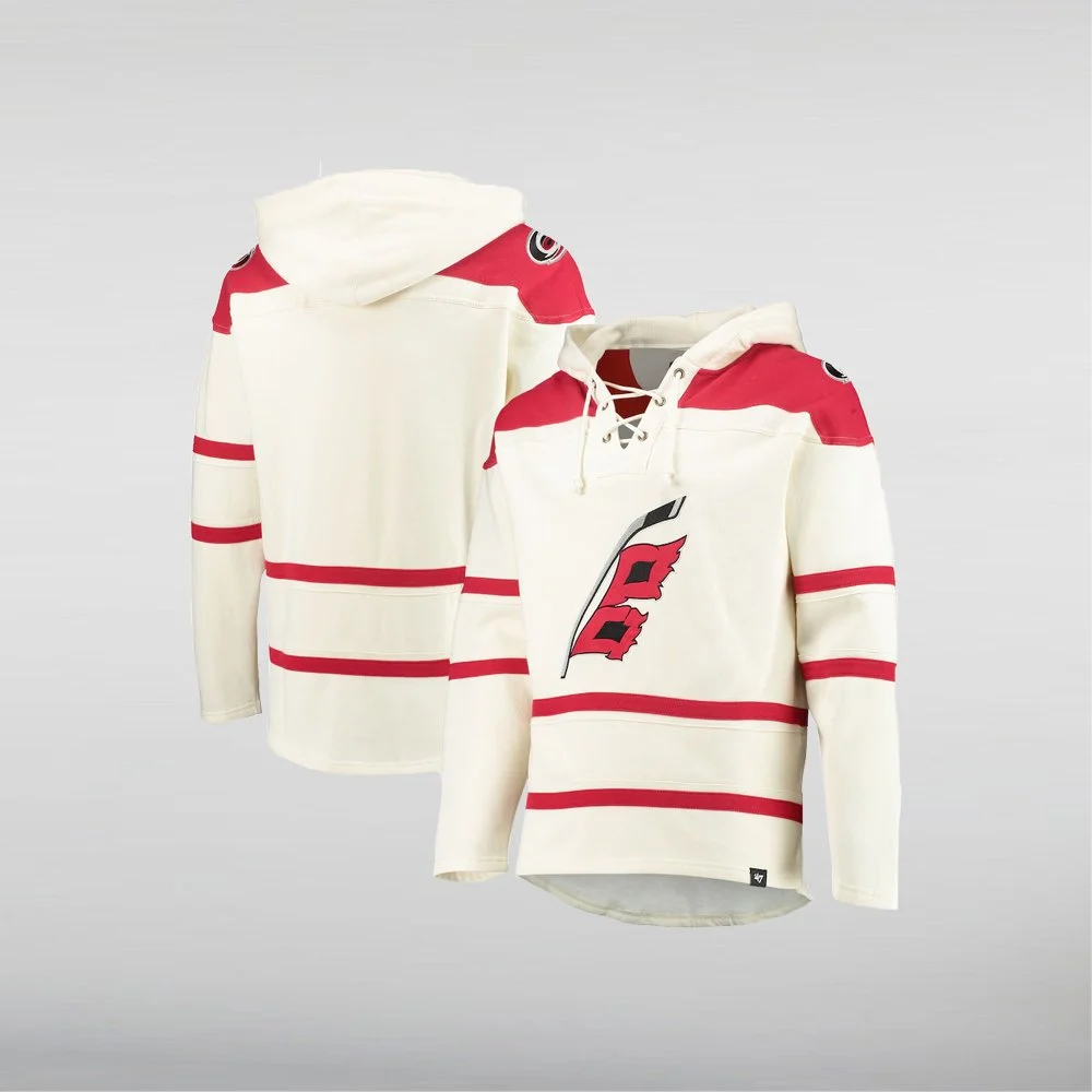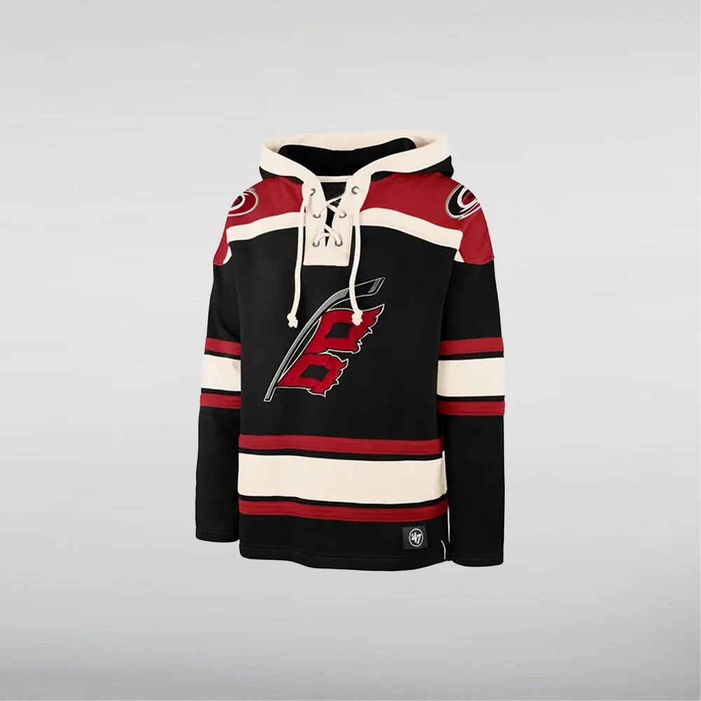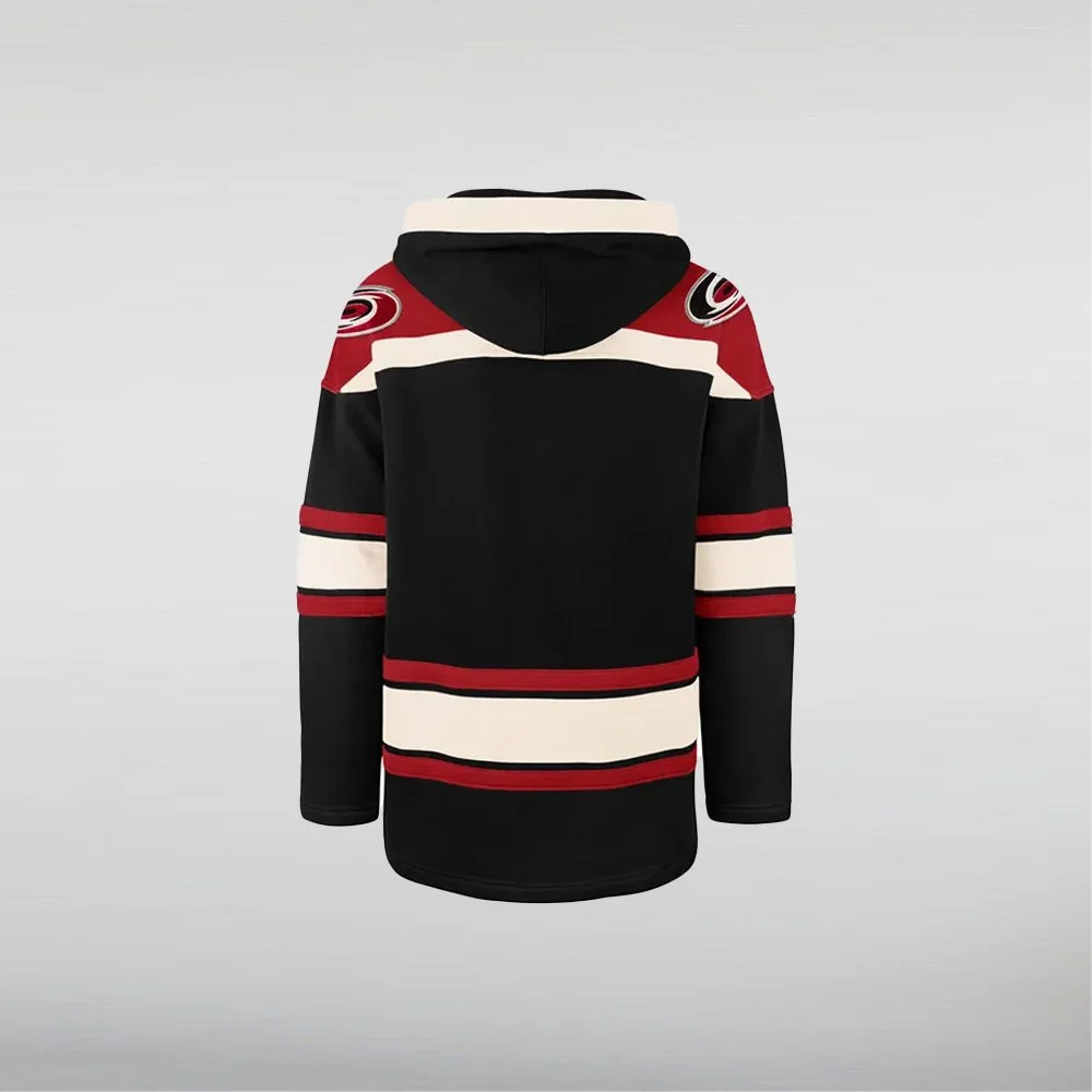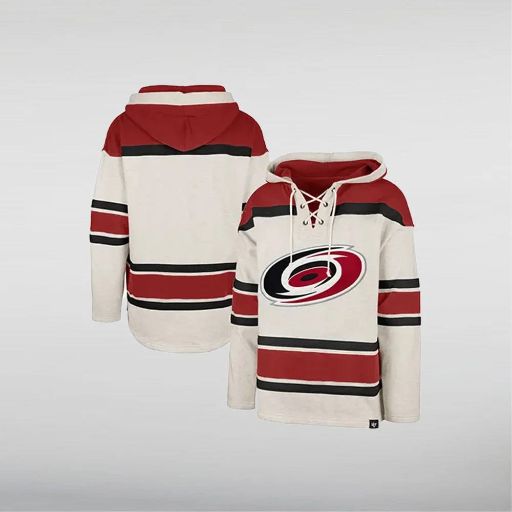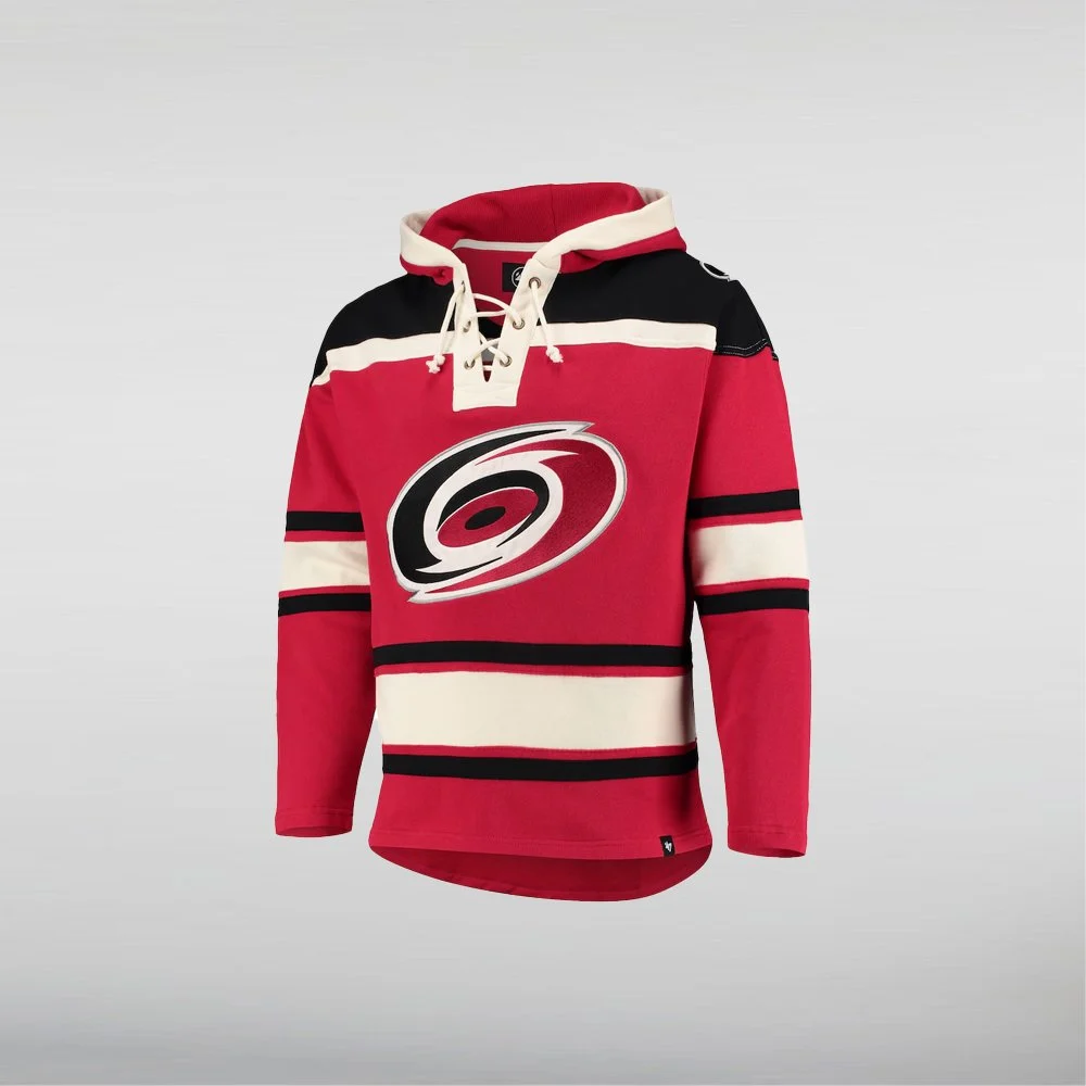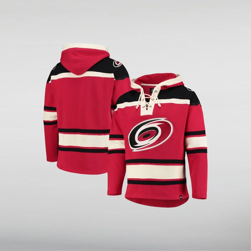 The Carolina Hurricanes Lacer Hoodie is a cool design for everyday wear and a perfect hockey style hoodie. This hoodie is a comfortable piece that delivers authentic design for hockey fans and it’s inspired by hurricanes traditional fashion. The Hurricanes fans who love wearing this hoodie with pride show strength and energy for their team. The perfect NHL energy can be seen by wearing this classic Caroline Hurricanes lacer hoodie, perfect for everyday wear and for game day too.Â