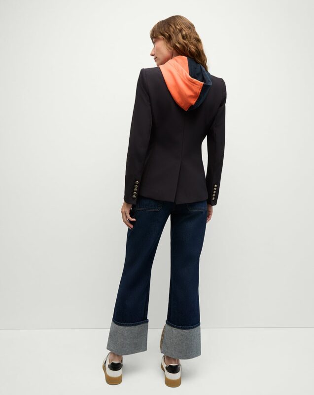 This “Chicago Bears Veronica Beard Navy Dickey Jacket” is not just a piece of attire, it’s a bold statement to wear on any big occasions to show your fashion style with class. It is made up with suiting fabric, outside a jacket coat style and inner has a hoodie style hooded collar with drawstrings and zipper style closure. Its jacket has a lapel style collar with button up closure and full length sleeves with rounded cuffs and also 2 outside pockets.