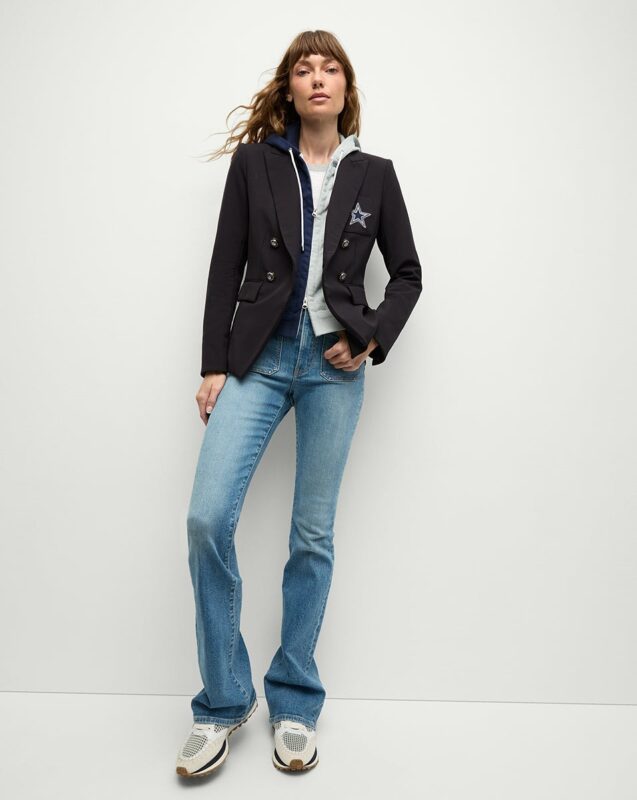 “Dallas Cowboys Veronica Beard Navy Dickey Jacket” is a unique statement of clothing that has perfect fashion style with comfort. It has a collaboration with the NFL and Dallas Cowboys and makes this unique look for you. It has a very different inner hood style and outer blazer style look. Which grabs the attention of everyone in public places. It is a slim, flattered fit which you can style with jeans and joggers for the fascinating look. You can wear it on casual events or traveling days.