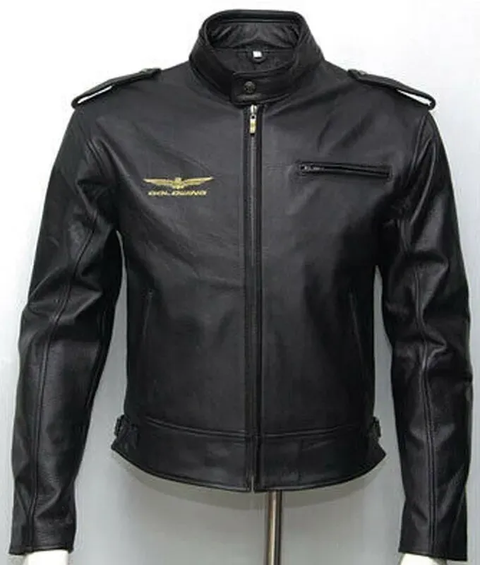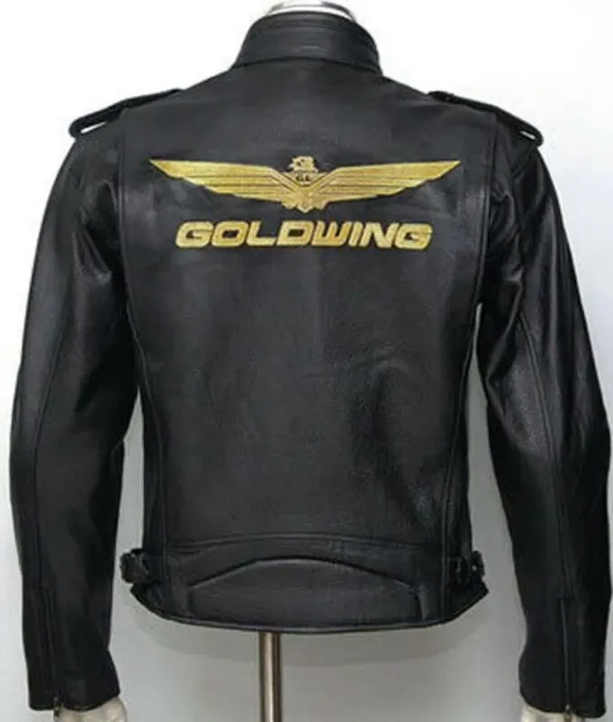 Goldwing Motorcycle Rider Black Leather Jacket