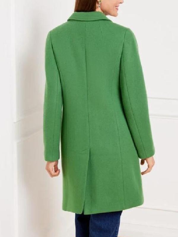 Let’s talk about the fabric and styling of this “Grosse Pointe Garden Society 2025 Aja Naomi King Green Coat”, it has a front double breasted button closure with a shirt style collar. Also this coat has long length sleeves with open hem cuffs. It is crafted with wool blend fabric with inner soft viscose lining and the beautiful design button pockets on both side waists and one on the inside.