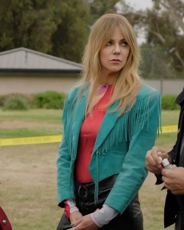 Ralph Outfits launches this stylish and stunning “High Potential Kaitlin Olson Teal Fringed Jacket” which you can wear in different places to grab a snatch bold look. Every genders loves styling their look by wearing jackets on adventurous places or on bike rides. This outer wear is very trendy attire in a sleek teal color, it’s a must have outfit for you. You can also wear it on outings, adventures or even for photography.