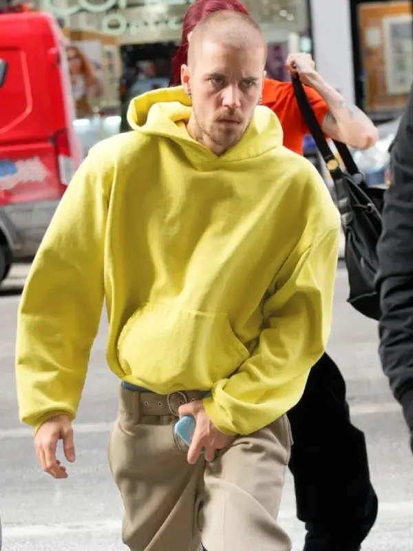 Channel amazing streetwear vibes with the talented justin bieber 2025 nyc pullover hoodie in a vibrant and fashion forward staple this is inspired by neon look spotted in manhattan. The Justin Bieber 2025 nyc pullover in yellow is made from high quality, relaxed, soft cozy viscose, style hoodie it has hooded collar, rib knitted him, also it has good stylish and high quality material with rib knitted cuffs, two big pouch pockets for essentials, durability, comforts and softness.