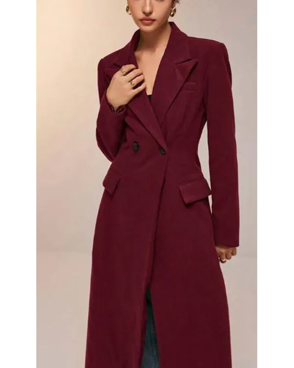 This fit is fully comfortable, the coat moves beautifully with body looks like modern royal fashion and style. This fit is a perfectly aesthetic look, the color and features look amazing. This fit goes with soft natural makeup and red, maroon lipshade this compliment too much. You will feel confident after wearing this, it is available in colors too, Perfect for fans and supporters of this elegant long burgundy coat.