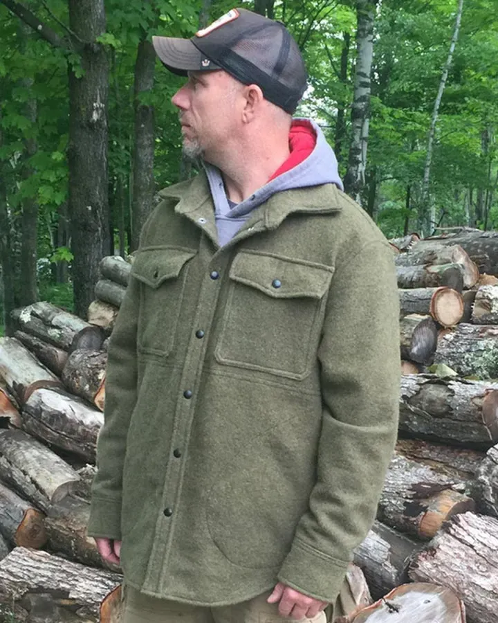 This “Lester River jacket” is made up with the premium quality material of wool-blend fabric with a viscose lining stitched underneath to make yourself comfortable in it. Its front has a buttoned closure for a sneak peak look. The stand-up collar is another tempting feature and its long length sleeves with button cuffs gives you a nice fitting attire. Furthermore, there are four external, two upper chest button pockets and two side waist pockets and two internal pockets in this jacket to give you extra storage and space.