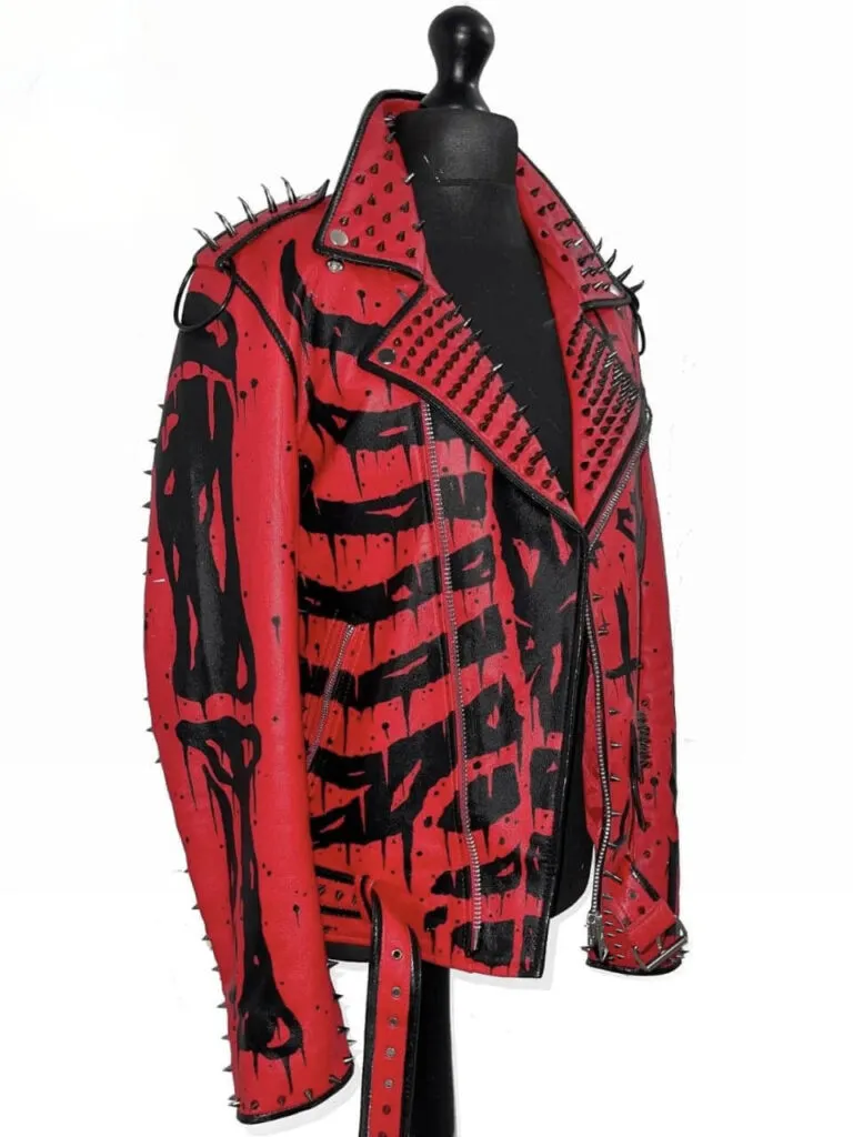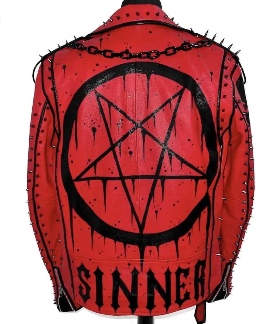 Introducing you to the “Mens Handmade Sinner Studded Red Jacket”, the ultimate statement piece for men’s punk style fashion. Crafted with interesting meticulous attention to detail, this jacket is designed to make yourself a bold stand out personality. It allows a fashionable look with 100% durability fabric and fine stitching quality. So what are you guys waiting for? Elevate your fashion game by styling this utmost piece of clothing.