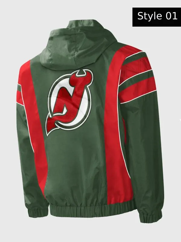 The “New Jersey Devils Starter Pullover Jacket” has a branded YKK zipper front closure which has button plus zipper closure both with a stand up collar that keeps your modern trend-driven desires at the peak. It is made up with premium quality of cotton polyester material, long length sleeves with elastic cuffs and hemline and has two side waist pockets on the front of it. It comes in two different color combinations one is green and red and the second is white and black.
