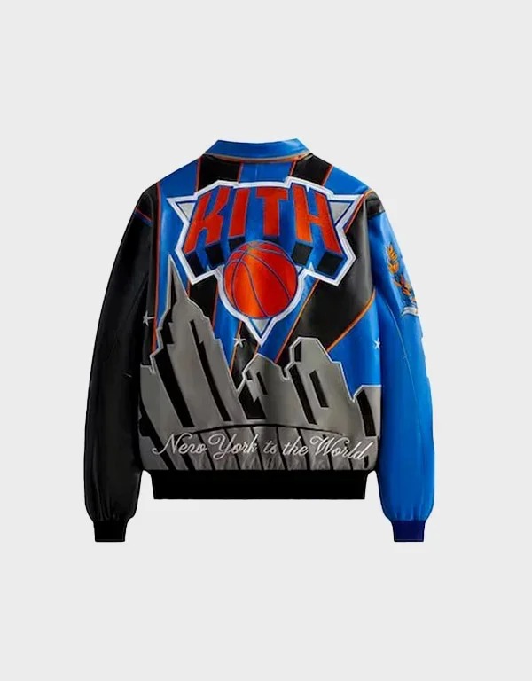 This “New York Knicks Leather Varsity Jacket” clothing is a functional piece, which is inspired by an NBA team. Kith and Jeff Hamilton have collaborated in this piece. They have collaborated in several jackets of the sports teams. This jacket quality is high-end and has unique design materials on it. It has a mixture of both blue and black color which give vibes of a bold look. You can wear this jacket in various places like sports events, casual outings and for photography.