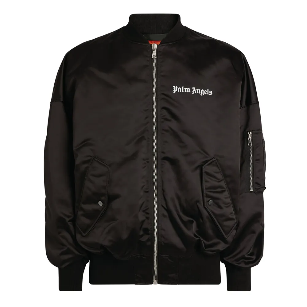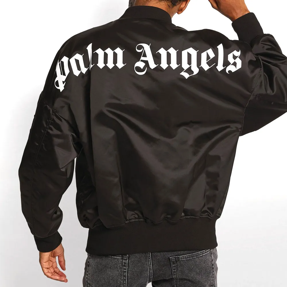 Elevate your streetwear game with the palm angels logo black bomber jacket, an essential that fuses luxury fashion with urban edge. This beautiful palm angels logo black bomber jacket is made from high quality, lightweight, full front zip sleeves, ribbed cuffs, hem pockets, the design and the features of this jacket gives personality, and confidence it has perfection and it has both durability and comforts.