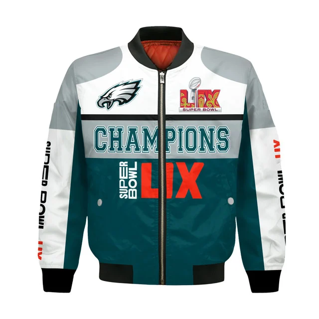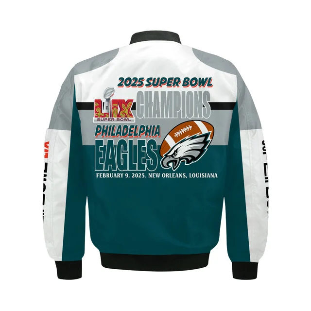 Celebrate history in style with the Philadelphia eagles super bowl lix 2025 winning spirit bomber jacket. The ultimate tribute to a championship season. This is for die hard fans this spirit bomb jacket is crafted from premium quality, so smooth, lightweight, embroidered super bowl lix championship graphic on the chest and back while eagles logo on the front sleeves, durability and comforts it is available in multiple sizes. Wear it with your favorite jeans and t- shirts with boots and white sneakers, this jacket provides an aesthetic look too. Just grab this amazing Philadelphia eagles super bowl lix 2025 winning spirit bomb jacket before it’s gone.