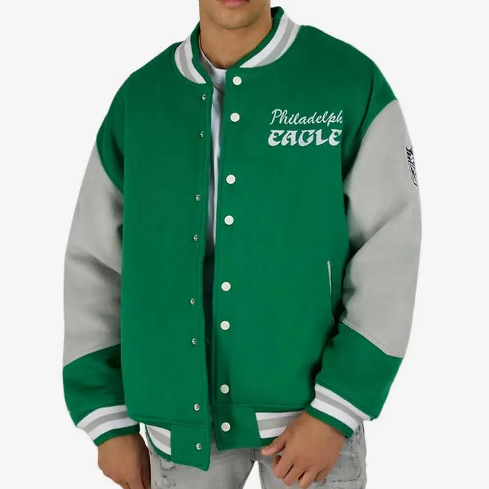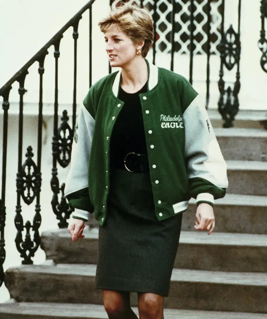 This eagles jacket is inspired by Princess Diana and she wears this eagles jacket during school runs with her sons and is photographed by someone. We found her wearing this jacket many times, as it was their favourite attire. The green and grey of it will look cool on both genders. This “Princess Diana Philadelphia Eagles Jacket” can be styled with any shirt and jeans to give you a fashionable look.