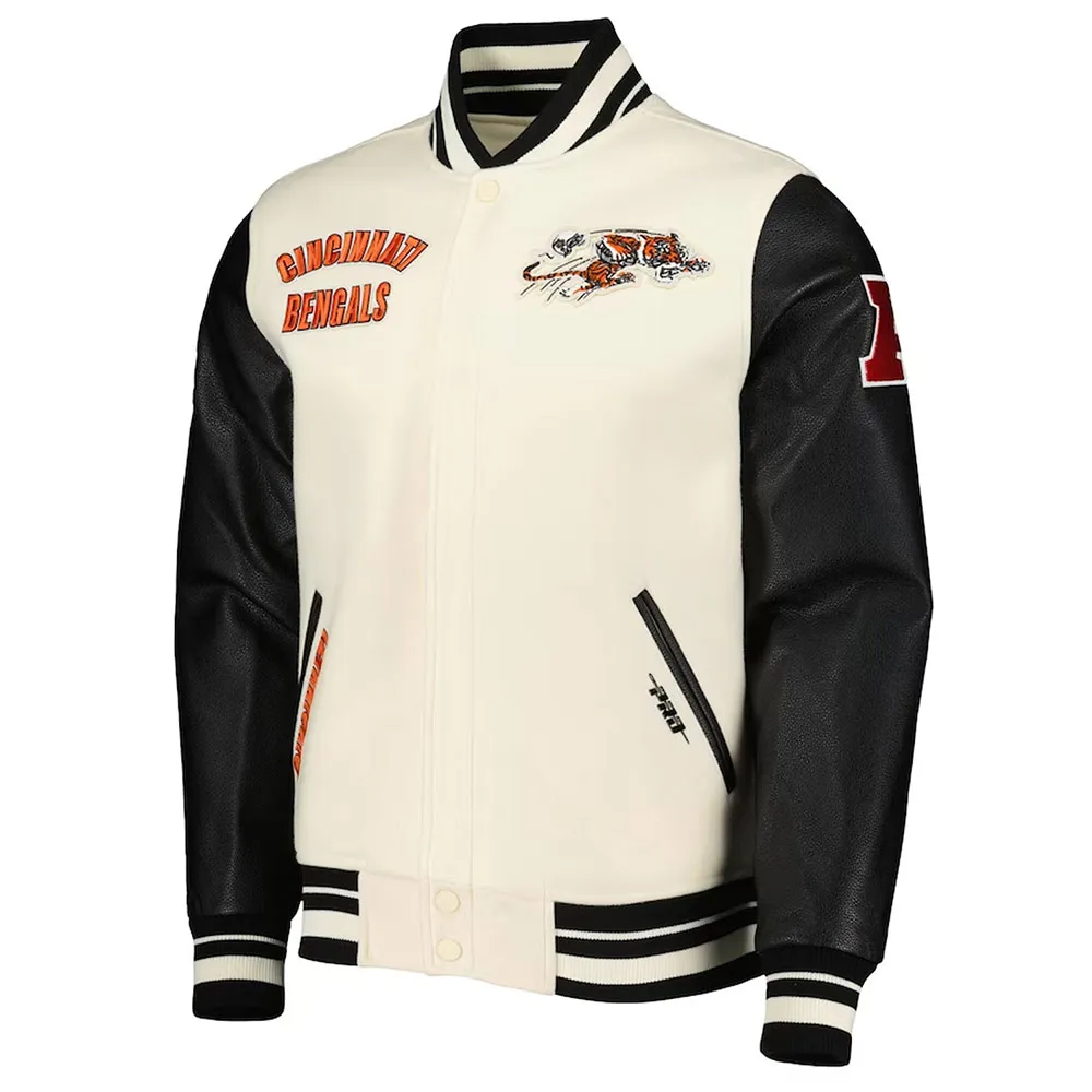 The NFL is a high voltage game that has kept the fans at bay. This tournament has always engaged fans with its many teams and franchise. Likewise, one of the top sides to watch out for is Cincinnati Bengals. Additionally, despite its huge fan base many supporters like to wear Retro Classic Cincinnati Bengals Varsity Cream and Black Jacket. This jacket has the Bengals written all over it.Â
