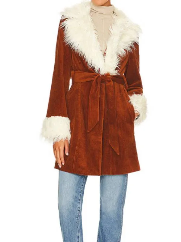S27 Brook The Voice Wood Fur Trim Brown Suede Coat