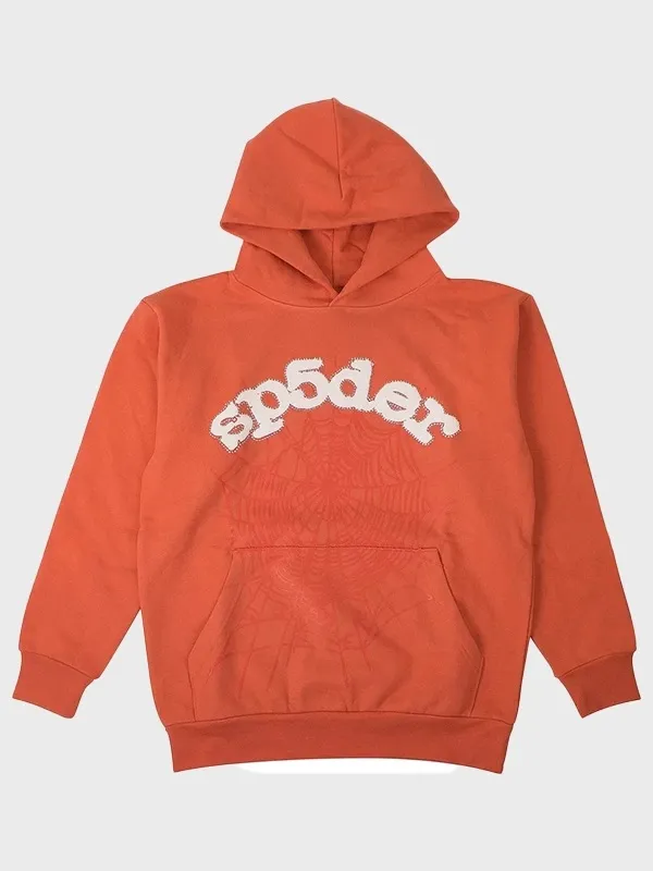 The “sp5der Orange Hoodie” has a bold orange color which makes you look unique and different from all. Having a web style on the chest. “Sp5der Orange Hoodie” is available in various sizes, including unisex options. Its a hood collar look with adjustable drawstrings for a customizable fit and a also a pullover closure. It has rib-knitted cuffs with a full length of sleeves.