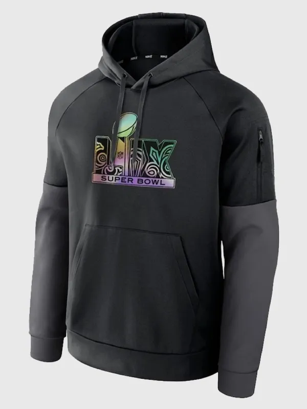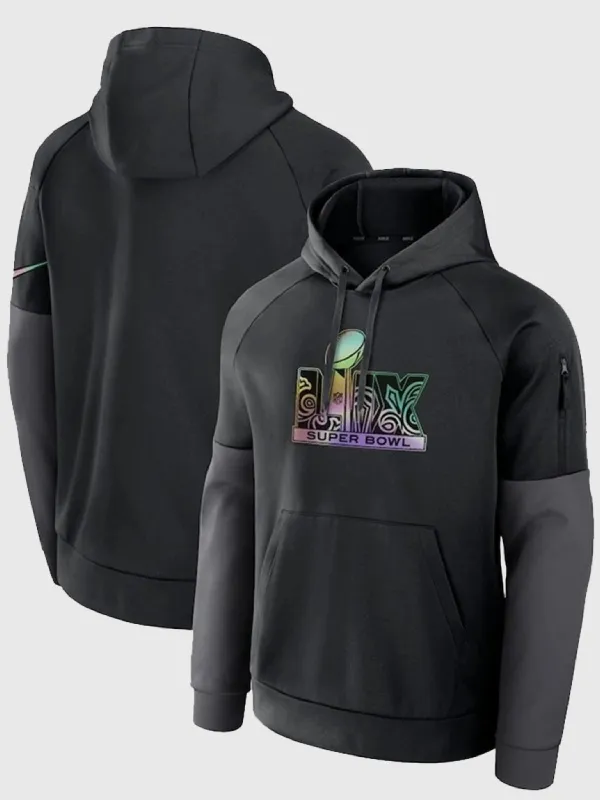 This “Super Bowl LIX Black Fitness Performance Hoodie” is crafted from soft fleece fabric material that gives you a structured comfort with the right amount of relaxation. You can wear it simply with jeans, paired with joggers for a sporty and athletic look. This hoodie is for everyday wear, not just for game days. It has all the same features like a hoodie has, but additionally it has a zipper look on the upper arm.