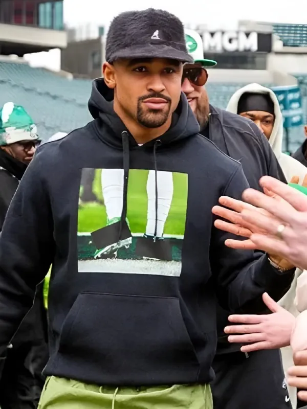 This “Super Bowl Lix Jalen Hurts Banned Black Hoodie” comes in the perfect and sleek black color with a front picture print that looks cool and classy on everyone. It’s not just a hoodie that you can wear, it’s a proper piece of attire that gives you a standout personality anywhere. It’s a comfortable yet fashionable piece of clothing which has 100% premium guaranteed material of fleece fabric that also ensures durability and warmth.