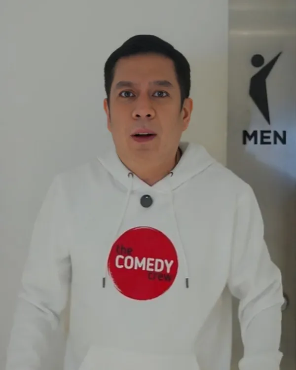 This jacket is inspired by the famous 2025 movie on Netflix, named as Alex Calleja Tamang Panahon US Tour which is a number one comedy show. In this show we found this white color hoodie which gives a very elegant and decent look. You can wear this hoodie on casual days at home or in streetwear to show your decent wearing style. This hoodie has a print of The Comedy Crew on the front chest of it in red color.