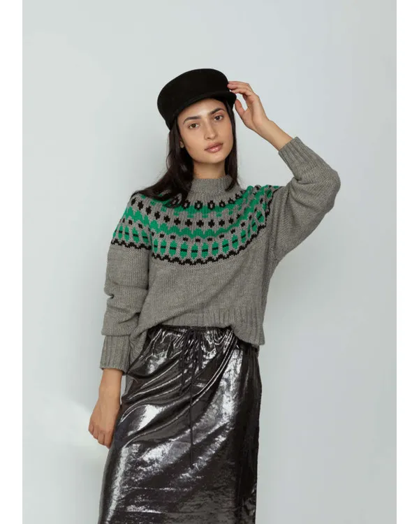 Embrace timeless charm and cozy sophistication with the four season 2025 tina fey grey and green fair isle sweater ins inspired by tina fey’s effortless wit and cool weather style, this limited edition and classical fit is available in soft grey and rich green forest color. This four season 2025 tina fey grey green fair isle sweater is crafted from premium quality, ribbed cuffs, hem, collar, and the traditional fair isle design across the chest and sleeves it gives nostalgic feel. Perfect for fans and supporters of this it is relaxed and ideal for indoor and outdoor activities, parties and best for your wardrobe too.