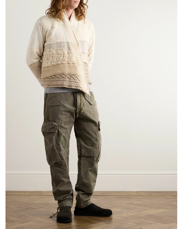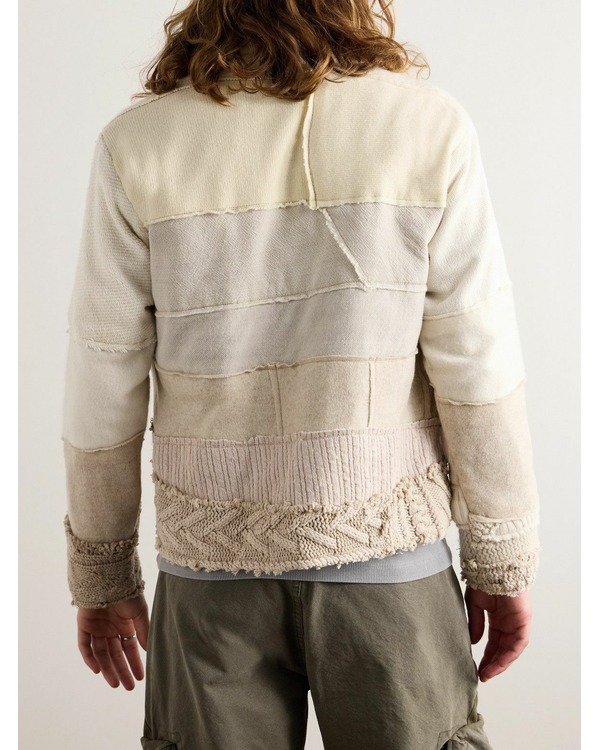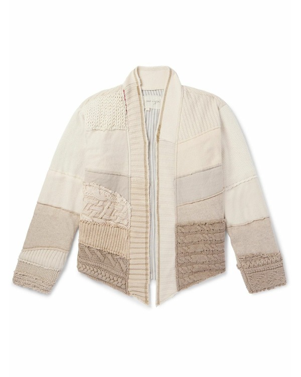 Embrace comfort with creative flair– this patchwork wool and cotton- blend cardigan, worn by john legend on the voice season 26, perfectly blends relaxed charm and refined style made from a plush wool and cotton mix, the cardigan features a soothing gradient of being and ivory blocks that artfully merge into a shameless patchwork design . Its roomy and cool silhouette and soft knit evoke a casual, effortless vibe– ideal for supporters and fans. Pair it with tees, and tailored trousers.