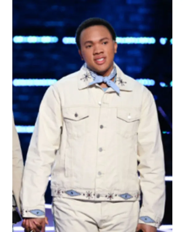 TV-Show The Voice S27 Bryson Battle White Studded Trucker Jacket