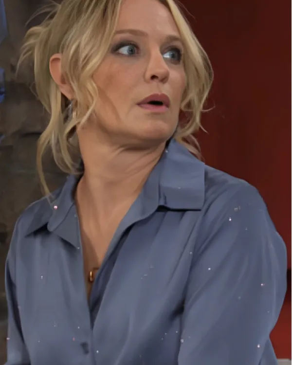 Now lets move head and discuss the design of The Young And The Restless 2025 Sharon Newman Blue Rhinestone Embellished Shirt. This fashion piece is crafted with satin fabric that adds a great touch to its smart style. Beyond that, this shirt features a blue color tone which perks up its overall appearance. All those who want to look mesmerising than shirt is a go-grabber.