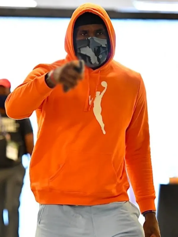 “Wnba Hoodie In Orange” has come in a fleece fabric material with inner viscose lining, which has a pull-up closure on the front which you style, layering it on the top of shirt, and with your favorite bottoms. It has a hooded style and is full length with rib-knitted cuffs and hemline. This hoodie is available in all sizes only in Ralph Outfits which give you the ultimate piece of attires to style on.